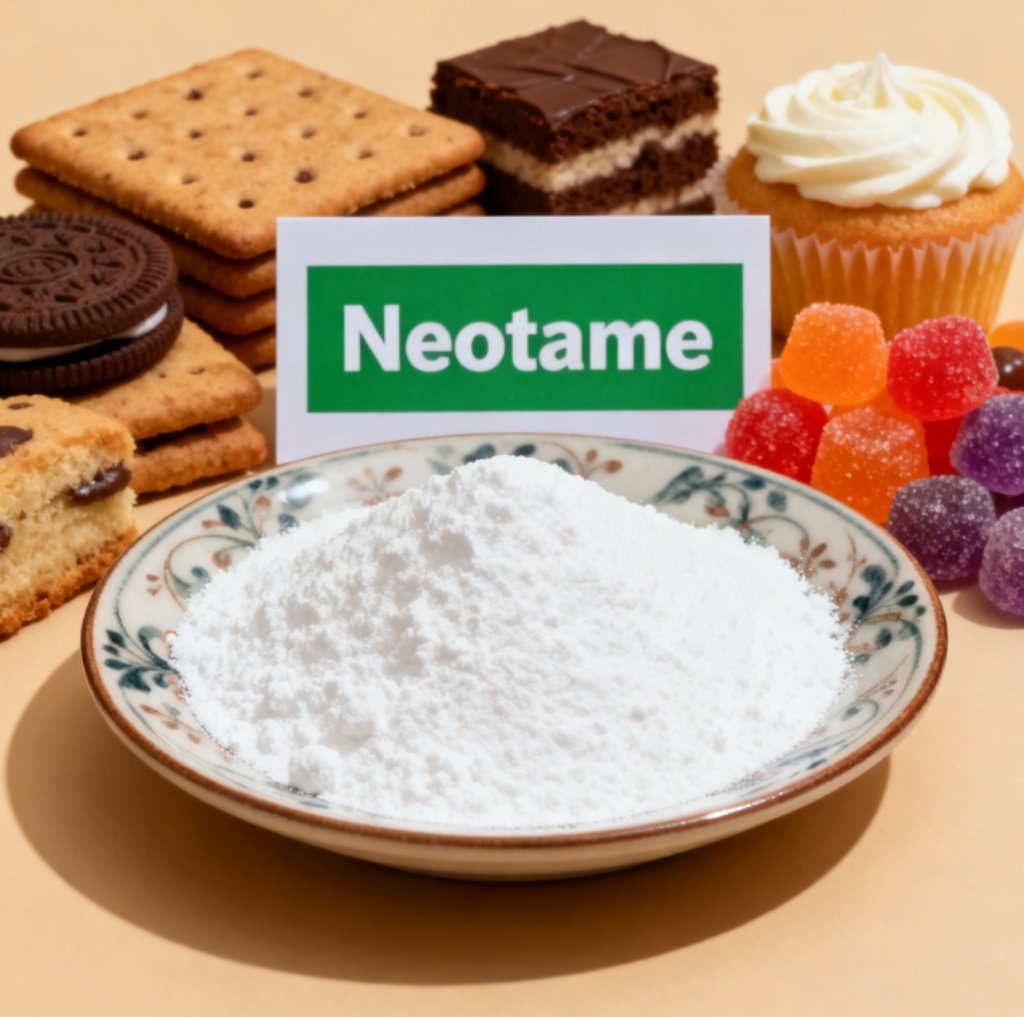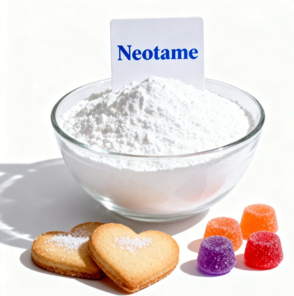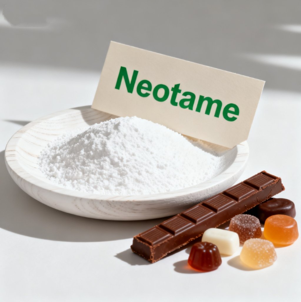 Neotame is a high-intensity, low-calorie sweetener derived from aspartame with enhanced sweetness and stability. It appears as a white crystalline powder, intensely sweet—approximately 7,000–13,000 times sweeter than sucrose.