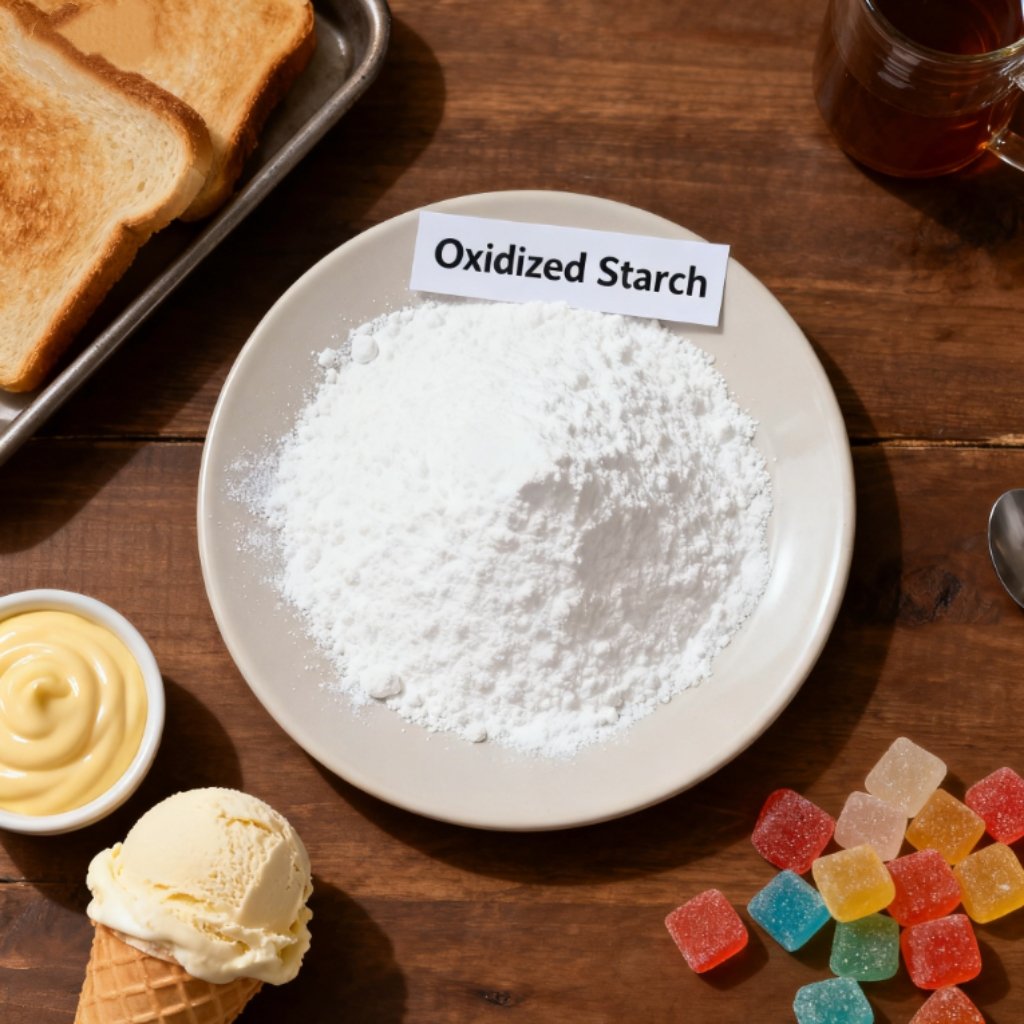Oxidized Starch is a chemically modified starch obtained by controlled oxidation of native starch (commonly corn, potato, or wheat starch). It appears as a white to off-white powder with excellent water dispersibility, film-forming ability, and paste stability.