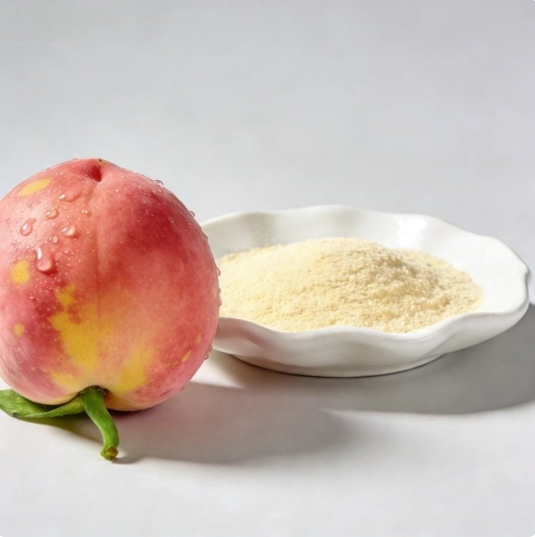 Peach Powder is a natural fruit powder obtained from fresh peaches (Prunus persica) through drying and fine grinding. It appears as a fine light orange to yellow powder, retaining the flavor, aroma, and nutrients of the original fruit.